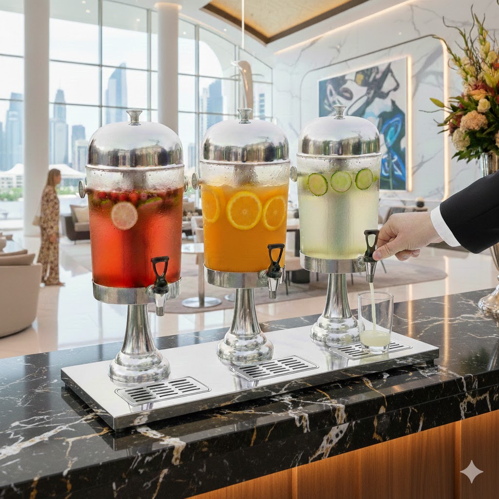No setor da hotelaria, os detalhes definem a experiência do cliente. O Dispensador Térmico Profissional em Inox é a solução definitiva para servir bebidas frias com elegância e eficiência. Graças ao seu inovador tubo de gelo central, o seu estabelecimento pode oferecer bebidas à temperatura ideal durante horas, garantindo a máxima qualidade gastronómica.