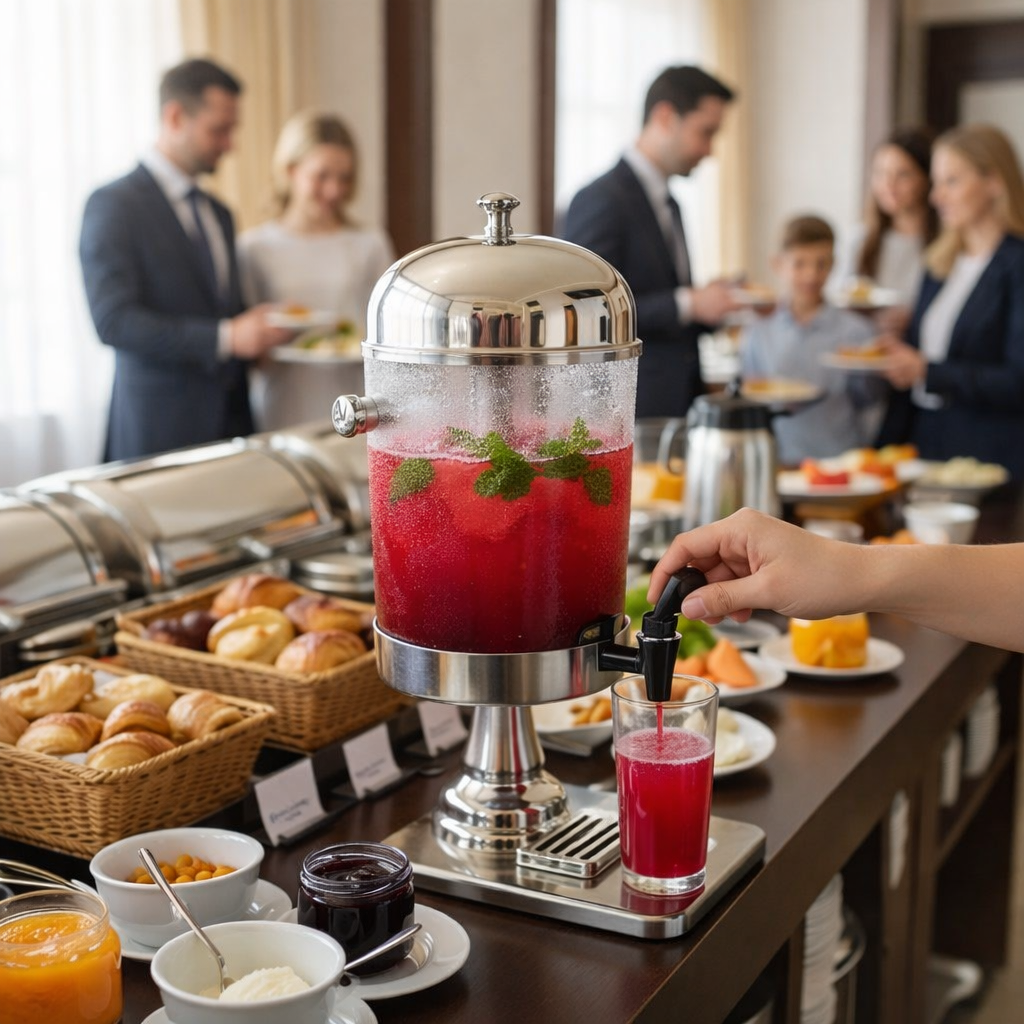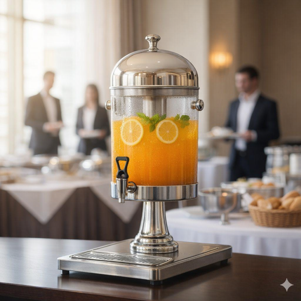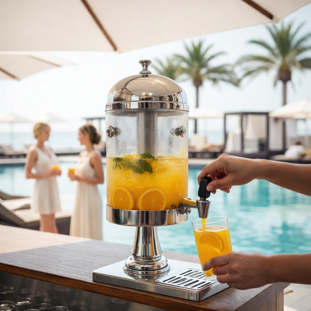 No setor da hotelaria, os detalhes definem a experiência do cliente. O Dispensador Térmico Profissional em Inox é a solução definitiva para servir bebidas frias com elegância e eficiência. Graças ao seu inovador tubo de gelo central, o seu estabelecimento pode oferecer bebidas à temperatura ideal durante horas, garantindo a máxima qualidade gastronómica.