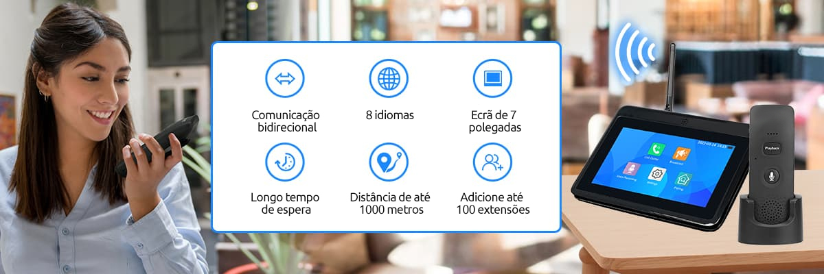 Apresentamos o nosso sistema de comunicação avançado, concebido para operação fácil e eficiente em vários ambientes: